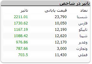 سه نماد شستا، فارس و تاپیکو بیشترین تاثیر مثبت را در رشد ۱۵ هزار واحدی شاخص کل داشتهاند و منفی شدن نمادهای معدنی نیز نتوانسته مانع از رشد شاخص کل شود.